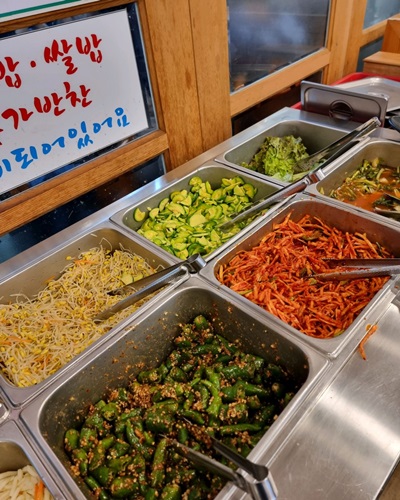 특히 셀프 코너가 마련되어 있어 보리밥과 각종 나물, 반찬들을 눈치 보지 않고 마음껏 가져다 먹을 수 있다는 점이 직장인들과 어르신들의 마음을 사로잡았어요. 방송에서도 소개되었듯, 직접 만든 강된장에 땅콩가루와 마요네즈 등을 배합해 만든 '오이고추 된장 무침'은 이곳에서만 맛볼 수 있는 별미 중의 별미예요.