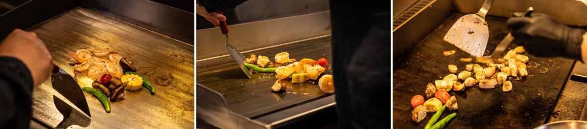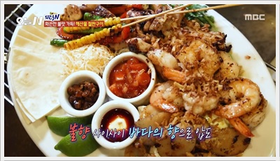 | 해산물 철판구이 | 키조개 관자, 새우, 갑오징어의 겉바속촉 조화 | 관자 두 개에 파프리카, 치즈 곁들이기 |