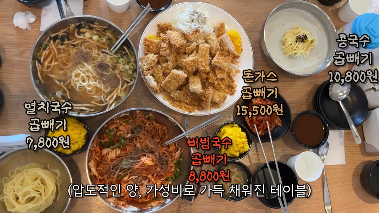멸치국수, 비빔국수, 수제 돈가스, 콩국수 등 딱 4가지 메뉴로 운영되는 이 국수집은, 군더더기 없이 음식 그 자체에 집중하는 곳입니다. 특히 박세리 감독이 오랜 단골이라고 밝혀 화제를 모았죠. 물가가 계속 오르고 있는 요즘, 국수 한 그릇에 6,800원이라는 가격은 정말 드문 일입니다. 이곳은 멸치국수와 비빔국수는 6,800원, 수제 돈가스는 10,500원이라는 가격을 유지하며, 품질과 양 모두 만족스럽다는 평가를 받고 있어요. 곱빼기를 주문하면 양도 어마어마하게 나와서 두 명이 나눠 먹을 정도로 푸짐하답니다.