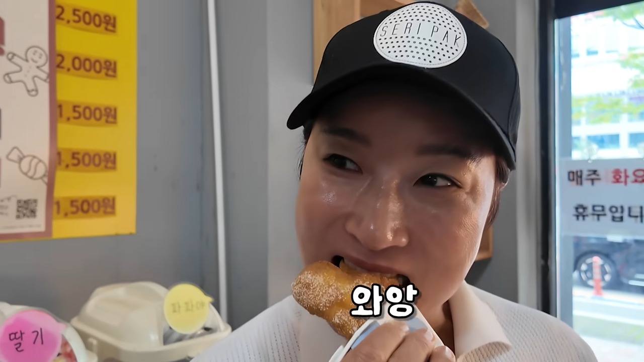 점심 식사 후, 박세리 감독은 세리배 초등대회에 참가하는 주니어 선수들을 위해 간식을 준비했는데요. 그곳이 바로 대전의 유명 꽈배기 전문점인 스마일꽈배기입니다. 이곳의 꽈배기는 옛날 방식 그대로 손반죽으로 정성껏 만들어 겉은 바삭하고 속은 쫀득한 식감을 자랑합니다. 박세리 감독도 “쫀득쫀득하고 맛있다”며 감탄을 아끼지 않았죠. 핫도그도 참 맛있다고 하네요.