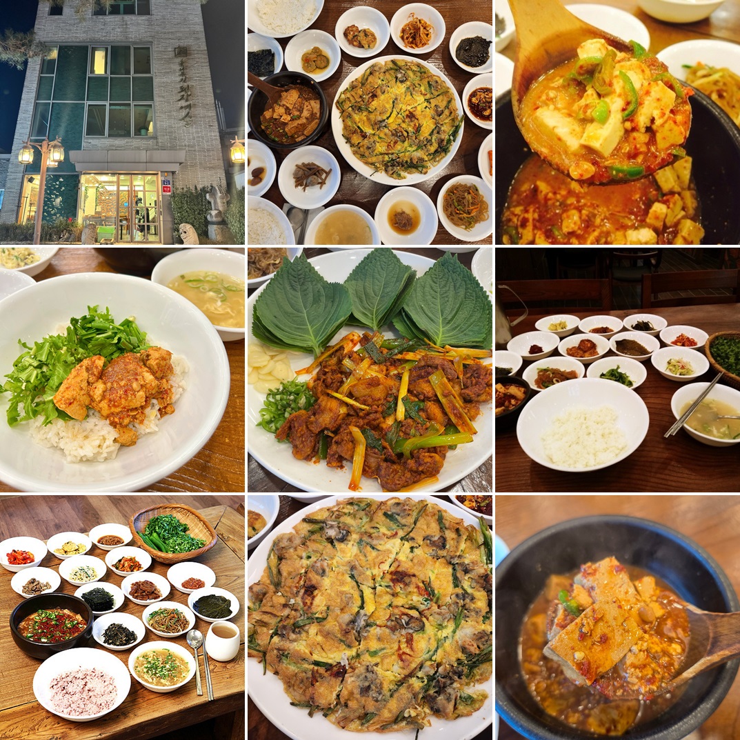 - 된장정식 (14,000원): 구수한 된장과 십여 가지의 정갈한 밑반찬이 함께 나와요.