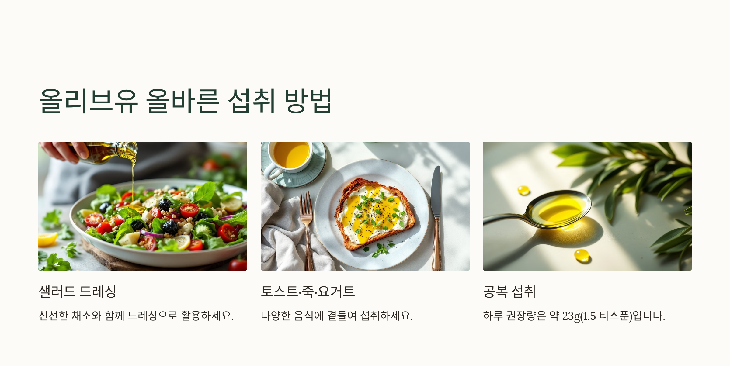 올리브유의 영양소를 최대한 활용하려면 섭취 방법도 중요합니다.