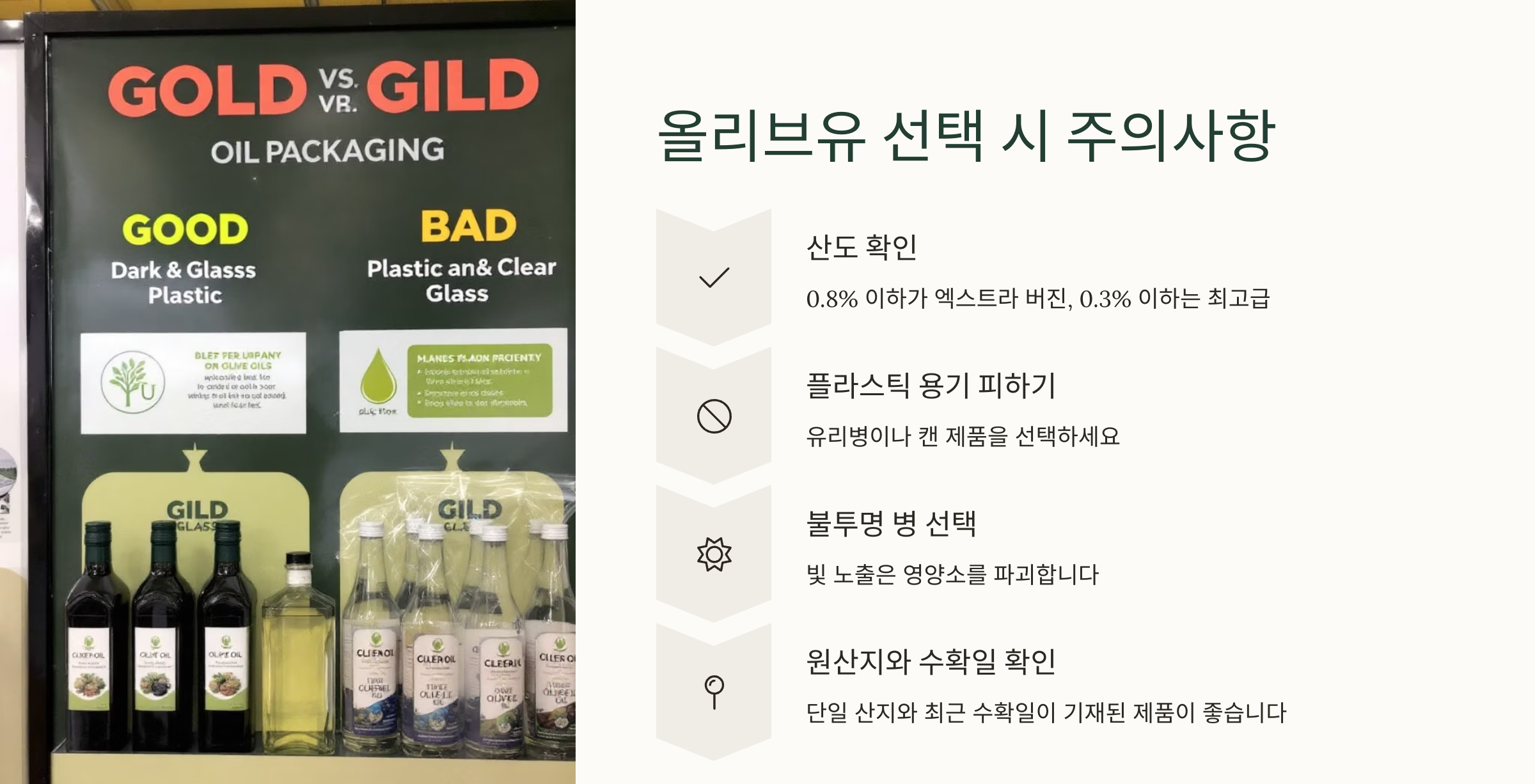 올리브유, 무조건 좋은 게 아니다? 선택 기준이 건강을 좌우합니다