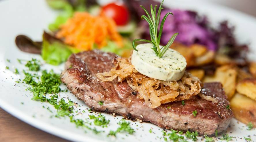 버터 소스 (Butter Sauce): 간단하게 녹인 버터에 마늘, 허브를 섞어 만든 소스는 찹스테이크에 부드러운 맛을 더해준다.