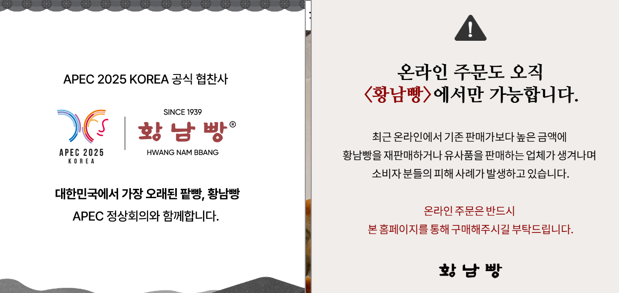 황남빵은 1939년에 만들어진 대한민국 1호 팥빵 브랜드로, 딱 하나의 종류, 전통 방식으로 만든 팥빵만을 고집하고 있어요.기계 생산이 아니라 손으로 직접 빚는 방식을 그대로 유지하고 있어서 식감이나 맛이 확실히 다르다고들 해요. APEC 행사에서 국가 정상을 위한 선물로 선택된 것도, 이런 역사성과 품질 덕분이겠죠.