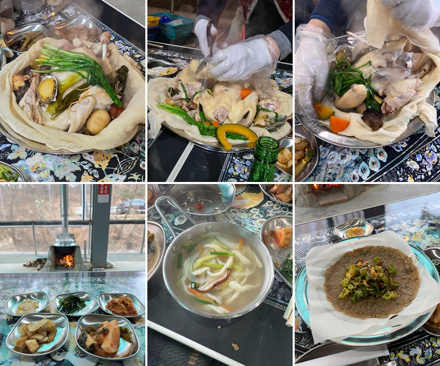 • 장작보자기솥닭: 토종닭 + 전복 + 밤 + 호박 등