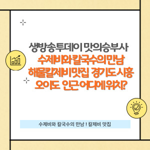 생방송투데이 맛의 승부사 코너에서 해물 칼제비 맛집을 소개했습니다. 이곳은 경기도 시흥 오이도에 위치한 ‘방파제칼제비’는 45년 전통의 칼국수 & 수제비 맛집으로, 오징어 먹물을 넣은 면과 신선한 해물이 조화를 이루는 얼큰 칼제비가 대표 메뉴입니다. 백합, 대합, 새우 등 해산물이 가득한 국물과 쫄깃한 면발이 일품이며, 감자전과 해물파전도 인기 메뉴로 손꼽힙니다. 넓은 주차 공간과 탁 트인 오션뷰를 자랑하는 이곳은 가족, 연인과 함께 방문하기 좋은 곳입니다.
