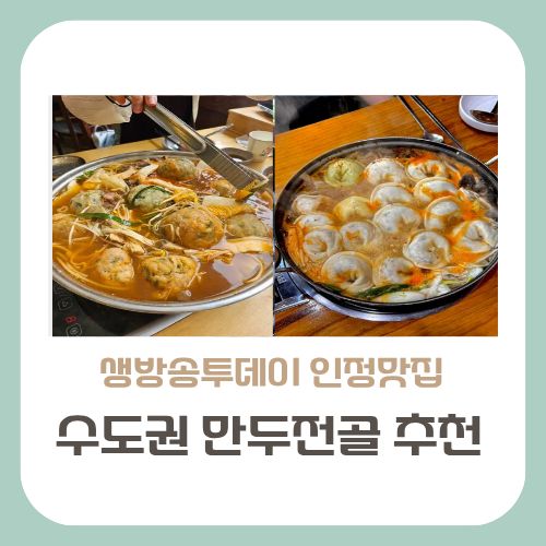 생방송투데이 인정맛집에서 소개한 서울·경기 지역에서 추운 겨울 따뜻하게 즐길 수 있는 만두전골 맛집 BEST 3을 소개합니다. 국물의 깊이, 손만두의 탄력, 풍성한 구성까지! 방송에도 소개된 인기 매장을 중심으로, 위치·가격·분위기·예약 팁까지 정리해드립니다.