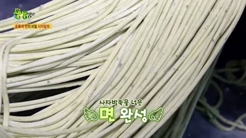👉 면은 사자발쑥을 반죽해 만들어 향긋하고 쫄깃합니다.