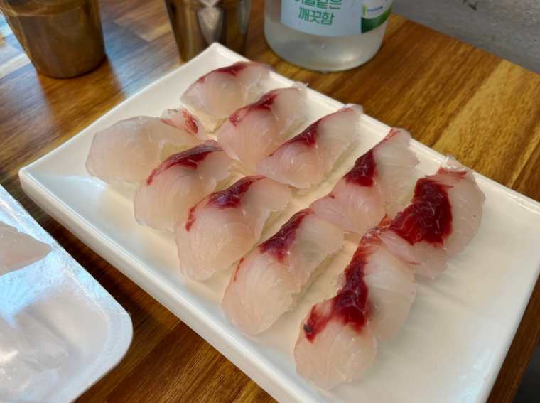 초밥을 쥘 때 공기층을 살려 부드러운 식감을 유지하며, 숙성도를 고려해 최적의 상태로 제공하는 점이 인상적인데요 쌀알이 크면서 밥이 굉장히 탄력이 좋고 생선의 숙성이 잘 되어 탄력이 좋은데 이는 숙련된 장인의 손길이 더해져야 가능한 기술을 자랑합니다.