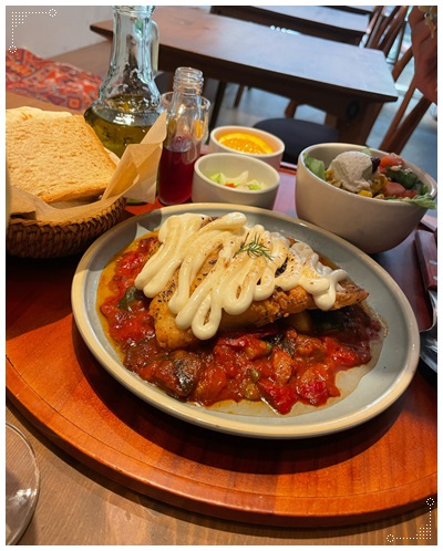 - 지중해로의 순간 이동: 매장 내부를 가득 채운 지중해 패턴의 타일과 카페트, 그리고 벽에 걸린 그림들은 마치 그리스 식당에 온 듯한 착각을 불러일으켜요. 경쾌한 재즈 음악까지 더해져 편안하면서도 로맨틱한 분위기를 완성해요.