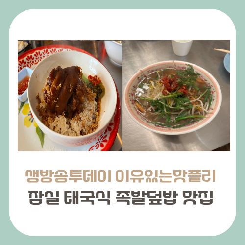 생방송투데이 '이유 있는 맛플리'에 소개된 서울 송파구 맛집 <서보>의 태국식 족발 덮밥 정보를 상세히 정리해 드려요. 현직 대사관 요리사가 직접 만드는 부드러운 족발 덮밥과 시원한 새우국밥의 비결, 그리고 방문 전 꼭 확인해야 할 캐치테이블 예약 꿀팁과 주차 정보까지 모두 담았으니 지금 바로 확인해 보세요!