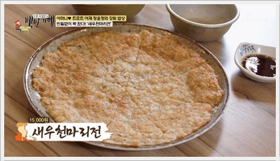 새우천마리전은 작은 새우가 3천2백마리 들어간 전으로 바삭하면서도 짭짤한 맛이 일품입니다.