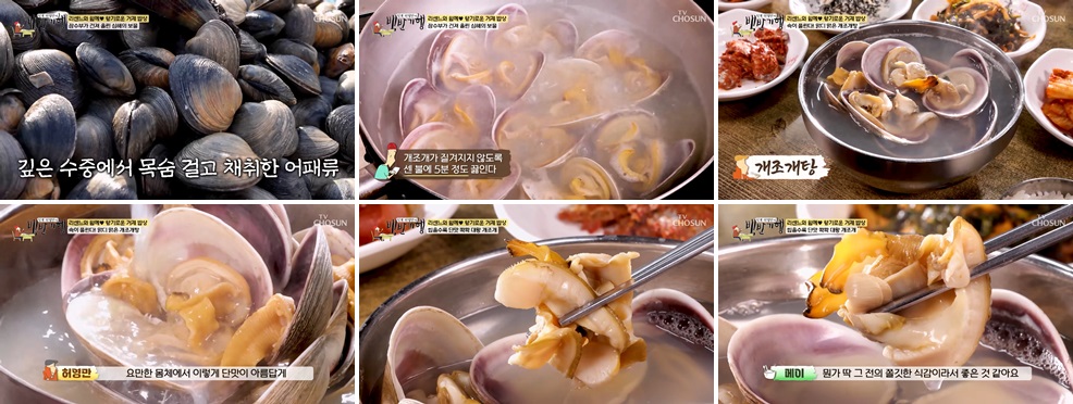 - 수심 30m 이상 바다에서 잠수부들이 직접 건져낸 개조개 사용하여 개조개탕