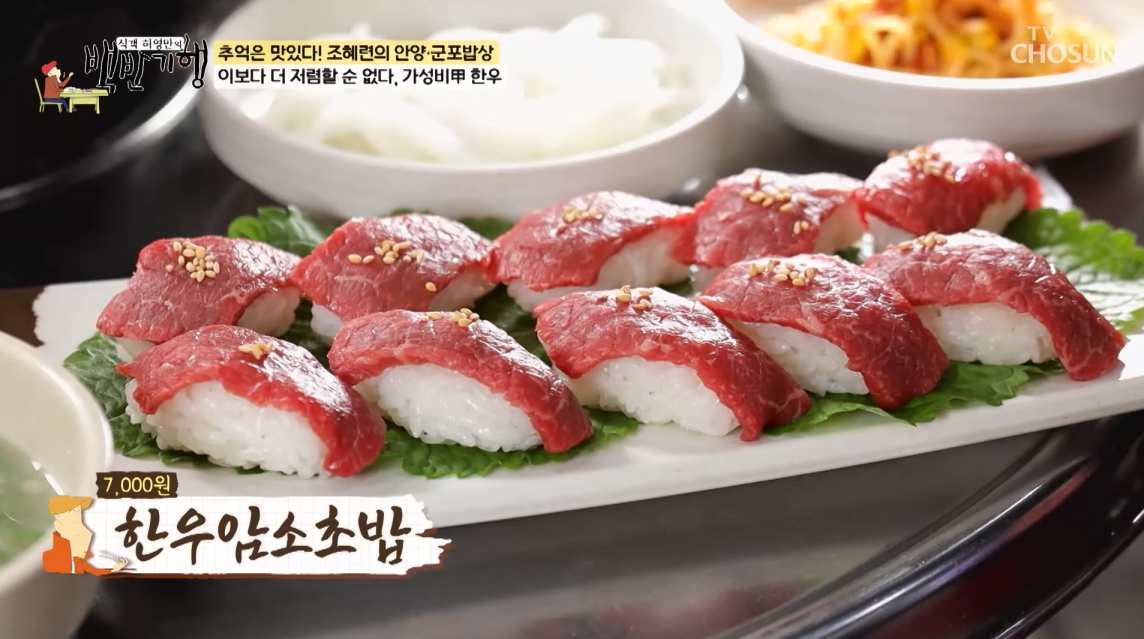 • 한우암소 초밥: 한우를 얹은 초밥으로, 마늘양념과 함께 곁들어 드시면 맛있게 드실 수 있습니다.