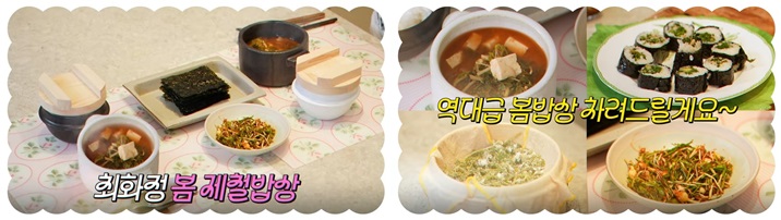 안녕하세요 최화정이에요에서는 봄맞이 제철 음식으로 건강한 식탁 차리기를 선보였는데요. 특히 봄이 찾아오면서 신선한 제철 식재료들이 많이 나오고 있습니다. 이에 겨우내 무거웠던 몸과 마음을 가볍게 해줄 봄철 음식은 영양도 풍부하고 맛도 좋은 봄제철밥상 드실 수 있습니다.
