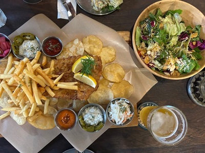 • 자이언트 피시앤칩스 & 샐러드: 맥주 안주로 제격인 겉바속촉의 대명사 메뉴입니다. (38,000원)