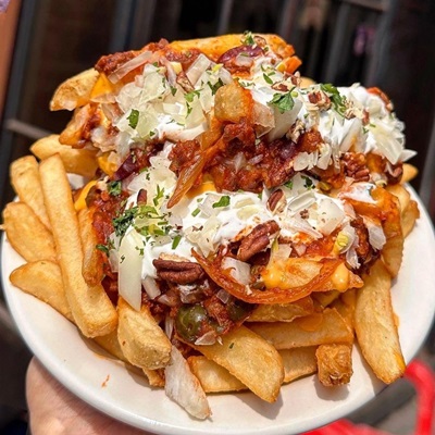 • 칠리치즈프라이: 매콤한 칠리와 꾸덕한 치즈가 듬뿍 올라간 필수 사이드 메뉴예요. (7,000원)