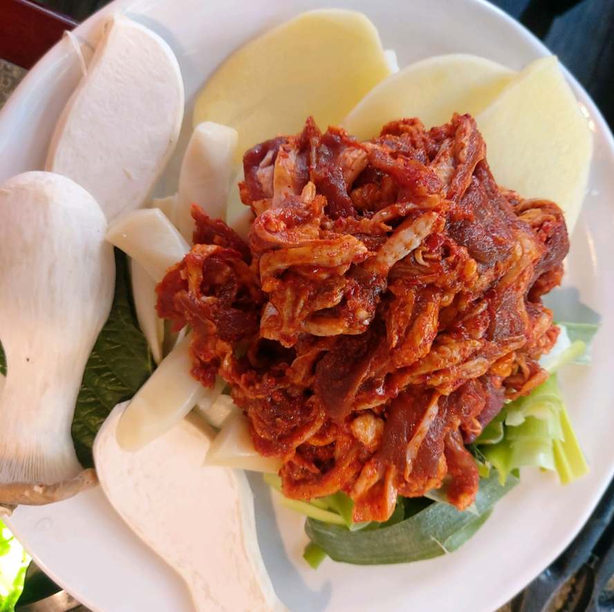 -오리불고기와 주물럭은 달콤하면서도 담백한 맛이 제공하고 신선한 야채와 함께 제공하고 있습니다.