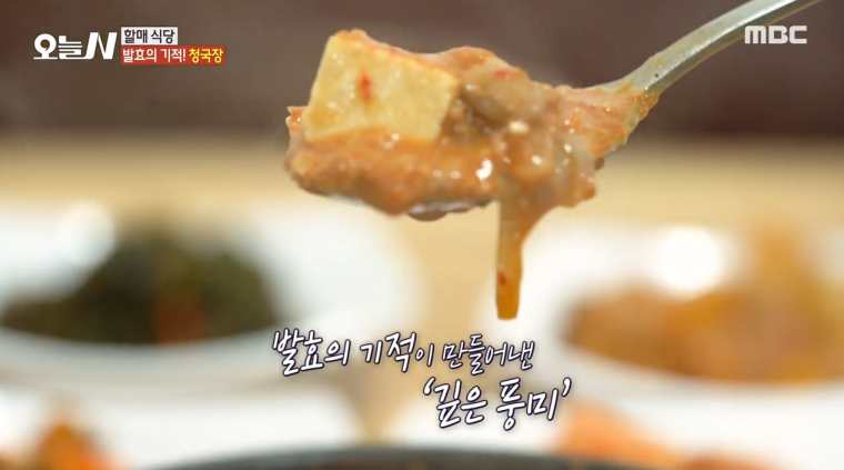 - 청국장은 콩이 듬뿍 들어가 있고 밥을 비벼먹기에 딱 좋은 스타일로 나옵니다.