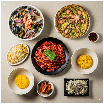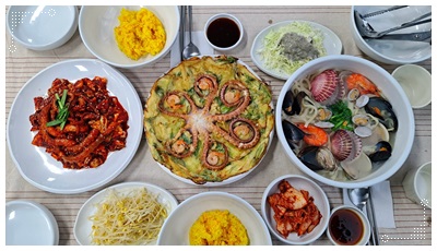 | 해상궁 한 상 | 낙지볶음 + 낙지파전 + 해물칼국수 + 강황밥 (최고 인기) | 55,000원 |