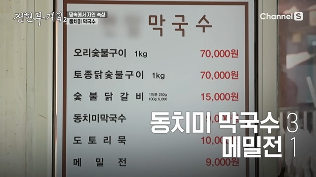 동치미 막국수는 메밀가루 7과 밀가루 3을 섞은 반죽으로 만든 국수와 함께 맛있는 양념가 비벼 드시면 되는데요 이때 땅속에 묻은 항아리에서 보관된 동치미 국물을 막국수에 넣어 드시면 더욱 맛있게 드실 수 있습니다. 또한 비벼진 막국수는 동치미 무와 함께 드셔도 시원하면서도 맛깔스러운 맛을 느낄 수 있으니 참고하세요. 막국수와 함께 고소한 메밀전을 잘익은 김치와 함께 드시면 더욱 좋습니다. 동치미막국수는 9,000원, 메밀전은 8,000원으로 비교적 저렴하게 드릴 수 있습니다.