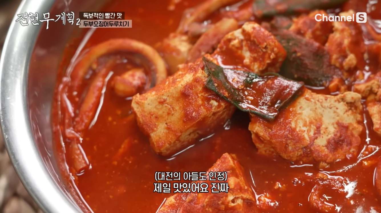 적덕식당은 50년 전통의 두부 오징어 두루치기 전문점으로 할머니 때부터 손자까지 이어오는 맛집으로 할머니 때부터 해오던 그 방식 그대로 이어오고 있어 단골손님이 많다고 해요. 두부 오징어 두루치기는 오징어를 볶다가 당일 만든 진한 육수와 함께 끓여준 다음 육수에 담가 둔 두부를 함께 넣어 끓어줍니다. 그리고 고운 고춧가루와 각종 양념을 추가하여 빨간 고추양념의 맛을 진정으로 느낄 수 있다고 해요. 매운 음식을 못 먹는 곽튜브도 두루치기 양념에 면을 비벼 맛있게 드실 수 있는 곳입니다. 참고로 대전은 두부두루치기가 유명한데 두부오징어두루치기 맛집은 적덕식당이라고 하니 꼭 참고해 주세요.