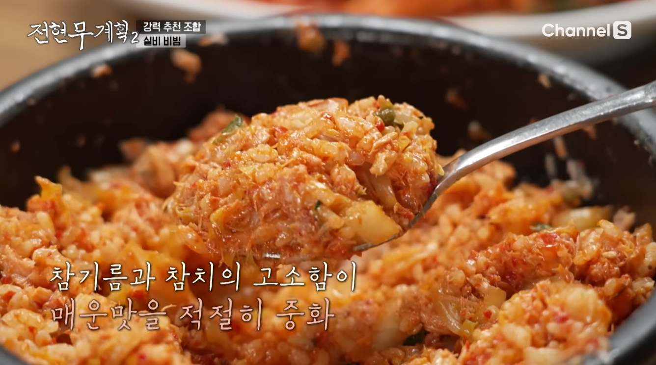 특히 실비김치를 못 드시는 분들은 옆에 편의점에서 참치를 사 오셔서 같이 비벼 드셔도 됩니다. 이때는 제공되는 김과 함께 싸 드셔도 별미로 맛있게 드실 수 있어요. MZ스타일로 참치김치비빔밥을 김에 싸서 그 위에 마요네즈 넣어드시면 매운맛이 중화가 된다고 해요. 매운 음식을 못 드시는 분들이라면 마요네즈까지 더해서 드시면 맛있게 드실 수 있어요.