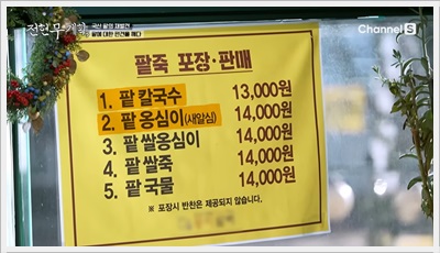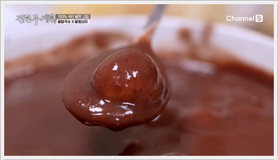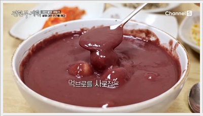이곳은 100퍼센트 국산 팥으로 연간 15톤에서 18톤을 사용할 정도로 팥을 사용한다고 해요. 농도는 찹쌀가루로 단순히 맞추는 방식이 아니라 팥물 자체의 불 조절로 잡는다고 했고, 옹심이는 찹쌀과 멥쌀을 비법 비율로 섞어 쫀득함을 만든다고 했는데요 진짜 쫀득함이 화면에서도 느껴지더라구요. 그 비율과 식감은 특허를 가지고 계신다고 해요. 같이 나온 반찬인 묵은지와 멸치를 함께 곁들였을 때 구수함이 더 올라간다고 하니 참고하세요. 반찬도 판매하신다고 하니 이점도 알아두시면 좋을 듯해요.