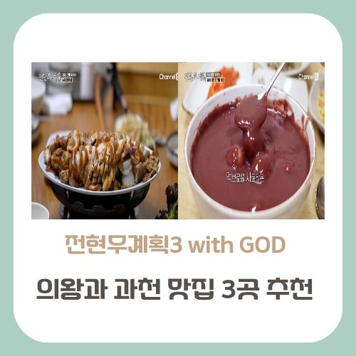 전현무계획3 의왕·과천 편에서 소개된 3곳은 각기 개성이 뚜렷한 곳으로 청계산 아래에서 구수한 팥 메뉴로 속을 채우는 콩지팥찌, 역 근처 노포에서 왕족발과 부대찌개 두 메뉴에 집중하는 통나무집, 그리고 산기슭 가맥 감성에 삼겹살과 과메기, 전골과 전까지 조합형으로 즐기는 오전상회까지 소개되었는데요. 이 글을 참고하여 마음에 드는 곳으로 한 번 다녀 오시는 것도 참 좋을 것 같습니다.