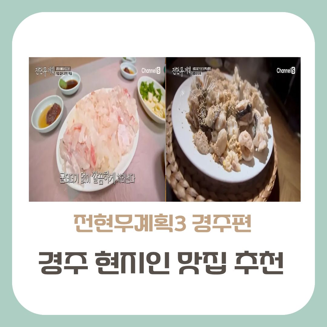 맛집 천국 경주에서도 포털 검색엔 안 나오는 ‘진짜 맛집’이 있습니다. ‘전현무계획3’에서 전현무, 곽튜브, 효연이 함께 떠난 경주 먹트립! 방송에 소개된 세 곳의 로컬 식당은 현지인에게만 입소문 난 숨은 명소들이에요. 자연산 회부터 불향 불고기, 생아귀 수육까지, 이색 맛 여행을 함께 떠나보세요.