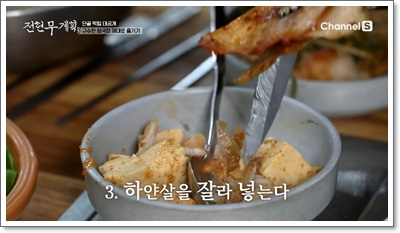 - 3층 쌓기 신공: 박지윤 씨가 보여준 비법! [흰쌀밥 + 양념 듬뿍 머금은 객주리 살 + 푹 익은 무]를 3층으로 쌓아 한입에 드셔보세요.