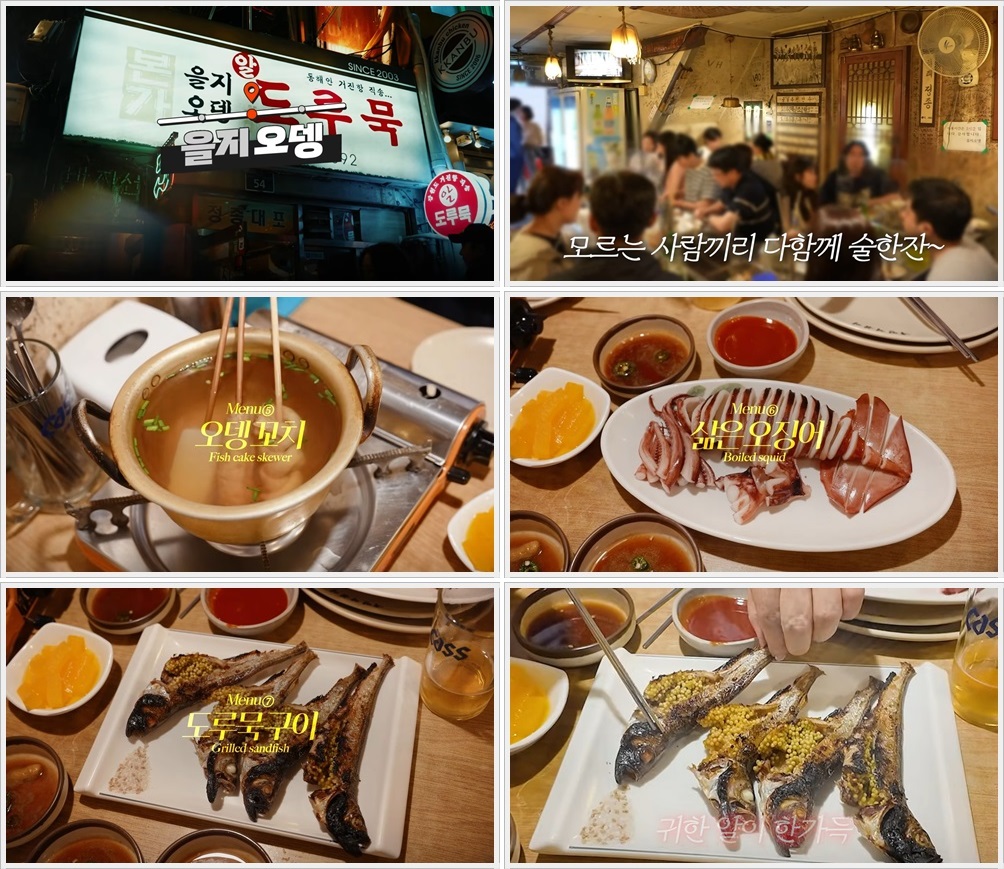 피자를 맛있게 드신 후에 2차로 맥주와 함께 간단한 안주를 먹기 위해서 찾아간 곳은 도루묵 구이로 유명한 을지오뎅입니다.을지로3가역 11번 출구에서 도보 1분 거리에 위치한 이곳은 레트로한 분위기의 술집으로, 오랜 시간 지역 주민들과 직장인들에게 사랑받아온 매장입니다. 특히 깊은 국물의 어묵탕과 직접 구운 도루묵, 삶은 오징어 등의 메뉴가 인기인데요.이곳은 특히 알이 가득찬 도루묵 구이가 유명하다고 해요 최화정님은 도루묵구이를 참 맛있게 드시더라구요.