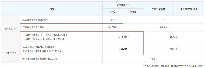 ✅보건용 마스크 KF94 또는 KF 80을 권장합니다.