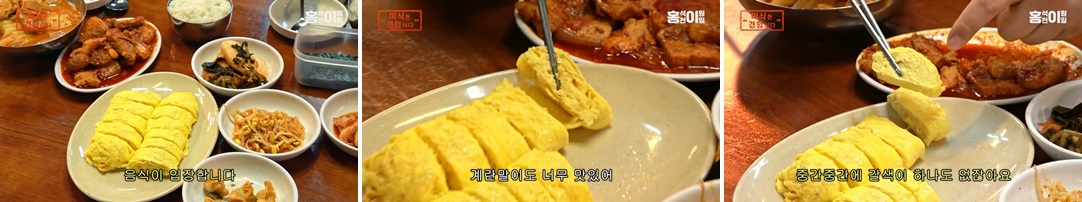 - 두 사람 모두 제육볶음의 고기 큼직한 크기, 김치찌개의 묵은지 맛, 계란말이의 촉촉함에 감탄을 연발했습니다.