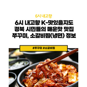 6시 내 고향 K-맛있을지도에서는 경북 구미 시민들의 맛집을 알아봤는데요. 특히 구미 시민들의 맛집은 매운맛으로 인기 있는 주꾸미와 매콤한 소갈비찜과 소갈비냉면을 드실 수 있는 곳을 소개했는데요. 알싸한 매운맛으로 구미 시민들의 사랑을 받고 있는데요 그곳에 대한 정보를 알아보도록 할게요.