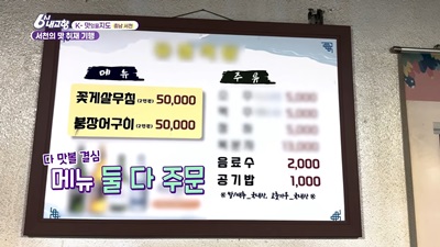 - 메뉴: 꽃게살무침 25,000원 / 붕장어구이 25,000원