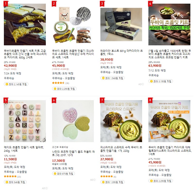 두바이에 직접 방문할 수 없는 분들을 위해 직접 재료를 구매하여 만들어볼 수 있는 세트가 판매되기도 합니다. 인터넷으로 확인해 보니 키트 가격은 대략 4만 원선~ 6만 원까지 다양합니다.